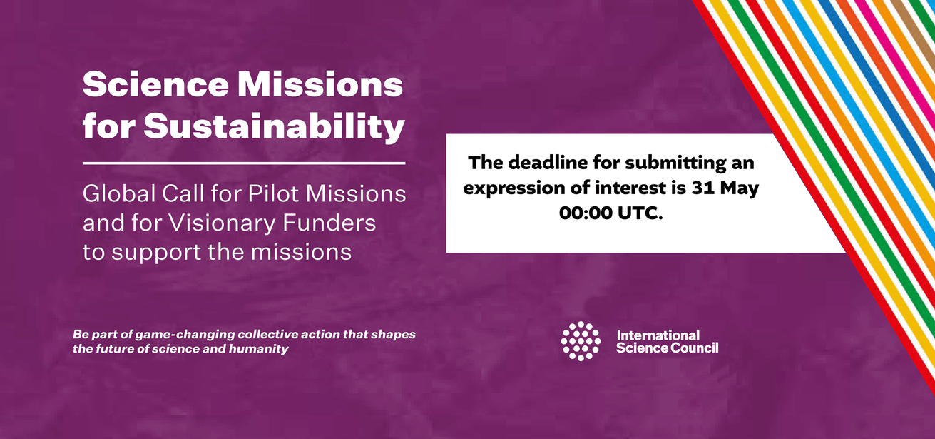 El Consejo Científico Internacional (International Science Council, por su nombre en inglés), mantiene abierta la convocatoria global que tiene como objetivo seleccionar a cinco Misiones Piloto para probar un modelo propuesto, evaluando su ejecución, resultados e impacto.